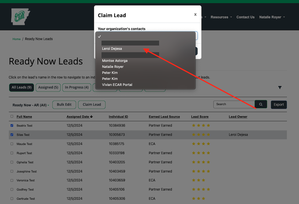 You will be able to assign, change assignment, and remove assignment on records to yourself and other portal users from your organization. The feature allows logged in organizations to have visibility of which teammates are working with which leads, and for portal users to be able to filter to just the leads assigned to them if desired.