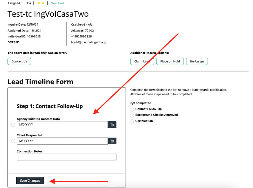 Step 4: Be sure to click “save changes” to save all updates to the record.